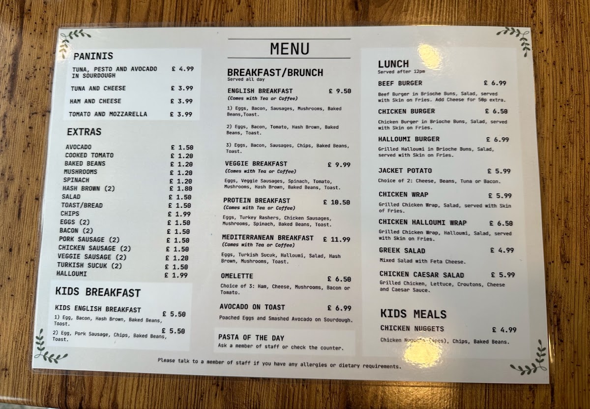 Welcome to Leaf and Latte, a delightful café located in the heart of Orpington. This charming spot invites you to experience a carefully curated menu that caters to all tastes, from hearty breakfasts to invigorating matcha drinks. Start your day with options like the classic English Breakfast or a flavorful Mediterranean Breakfast, all for just £10.50. For the little ones, there's a tasty Kids English Breakfast.